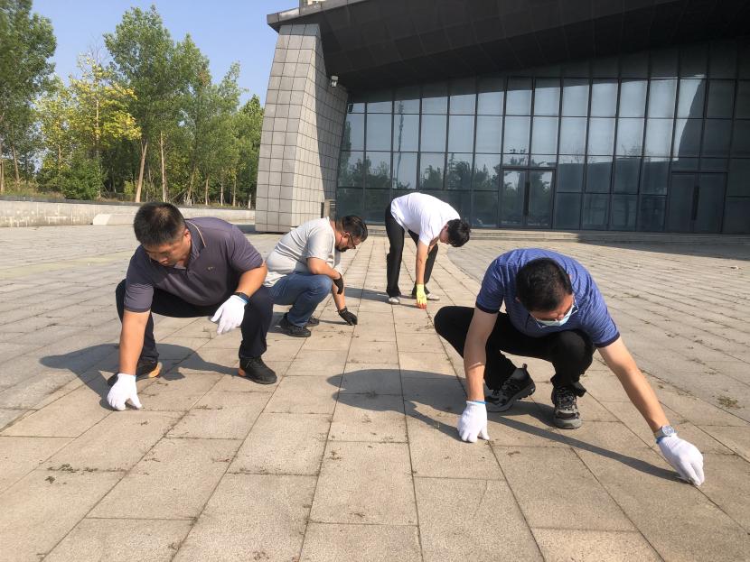 活动现场,党员同志、积极分子充分展现了不怕脏、不怕累的精神风貌,针对创智绿园内杂草、卫生死角等问题开展整治。创智绿园内处处是同志们清理杂草的身影,构成了一道亮丽的风景线,经过两个多小时的辛勤劳动,沿途杂草被清理得干干净净,环境面貌焕然一新。