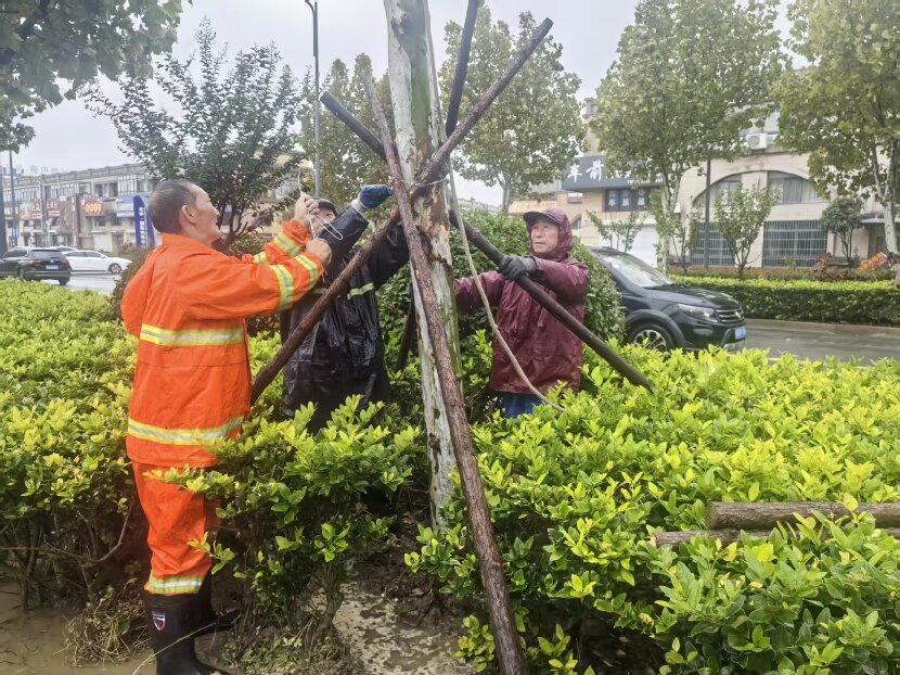“这工程工期不等人,苗木已经到现场了!大家赶紧把雨衣穿严实,咱们加把劲,今天务必把这一车苗木全种下!”在开发区228公路“安全精品路”创建绿化补植现场,雨水裹挟着凉意扑面而来,公司冲锋主将金华、星级员工苏志国却率先拿起工具踏进泥泞,高声动员着身边的班组成员。在他们的带动下,班组全员迅速行动,冒雨穿梭在作业路段,扶苗、定植、压实……一个个忙碌的身影在雨幕中勾勒出攻坚奋进的动人画面,用实干抢时间、保进度,全力推进绿化补植任务落地。