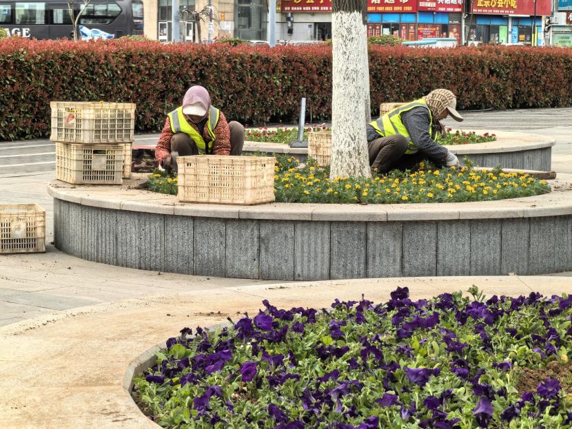 随着气温回升,春意渐浓,为提升城市景观品质,营造生机盎然的春日氛围,绿化分公司于近日全面开展春季草花换植工作。各主要道路、火车站广场及重要区域将陆续换上色彩缤纷的时令花卉,为市民打造“推窗见绿、出门赏花”的宜居环境。